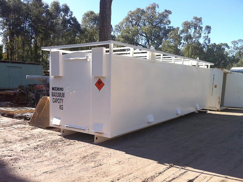 Our explosive magazines are constructed to Australian Standard AS2187.1-1998 and meet the stringent requirements of Australian Explosive Storage Regulations. The high quality relocatable explosive magazines are delivered ready-made for the storage of between 250 Kg and 20,000 Kg of explosives, detonators, MILSPEC, fireworks and other hazardous materials where safety and security is of critical importance.